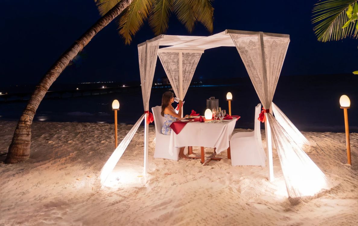Beyond the festive tables, Royal Island’s location in Baa Atoll, near the UNESCO Biosphere Reserve, sets the scene for underwater encounters with turtles, reef fish and, in season, manta rays. Guests can join guided snorkelling excursions, build multi day dive plans or choose gentle private cruises, from dolphin safaris and sunset fishing to sandbank escapes and stargazing set ups on quiet stretches of beach. At Araamu Spa, island inspired rituals, couple’s escapes and restorative massages help guests slow down between celebrations and start the new year feeling rested.